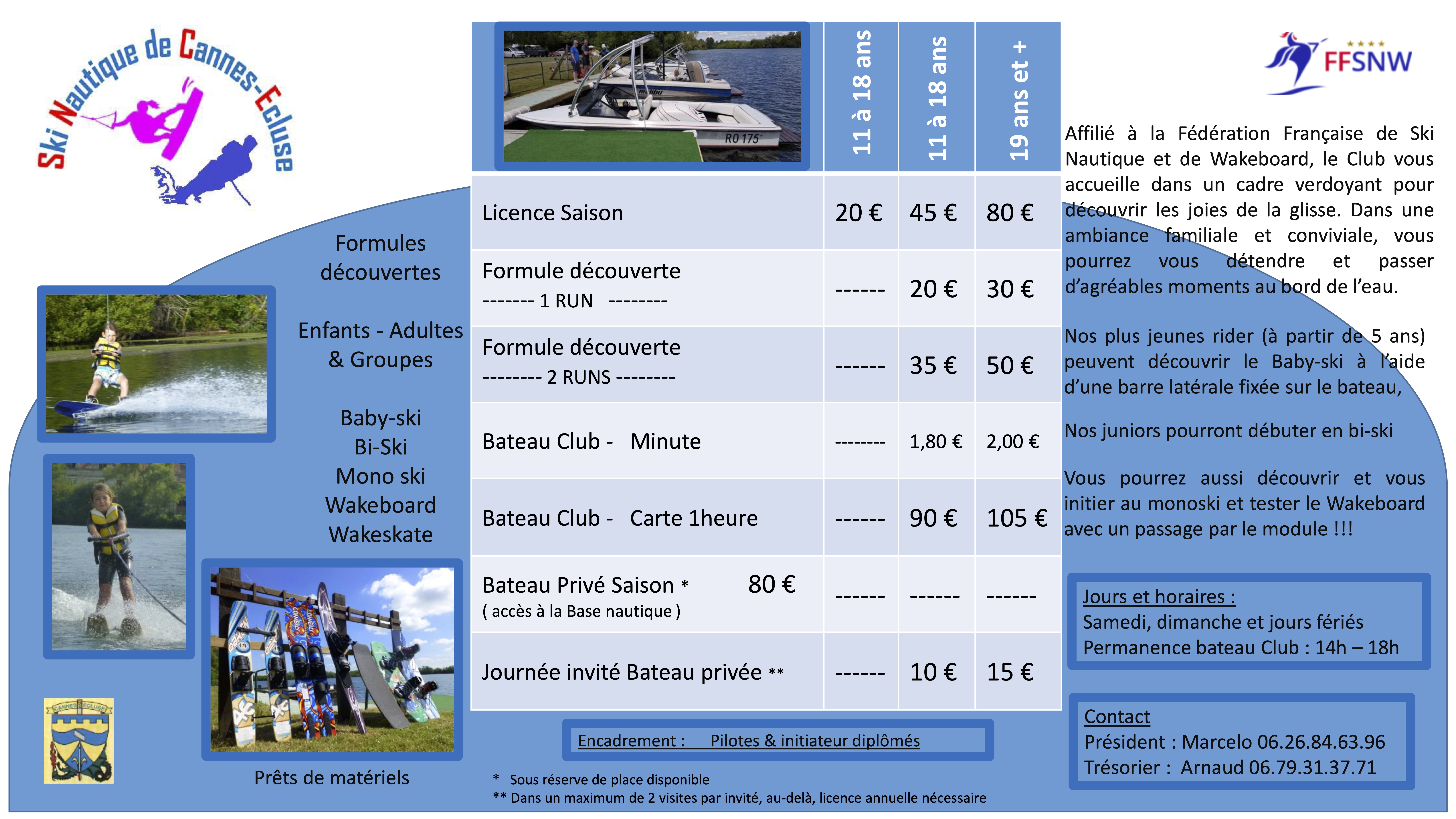 Affiliée à la Fédération Française de Ski Nautique et de Wakeboard, la section SKI NAUTIQUE du Club sportif de Cannes-Ecluse vous accueille dans un cadre verdoyant pour découvrir les joies de la glisse. Dans une ambiance familiale et conviviale, vous pourrez vous détendre et passer d'agréables moments au bord de l'eau.